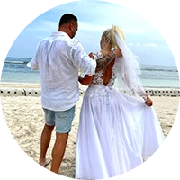 Adrienn megfelelő méreteket és elképzelési irányt adott Ildikónak. A ruha elképesztően gyönyörű volt. Finoman kidolgozott, alapos, minőségi munka. Kreatív csipke body felsőt terveztek nekem, egy oldalt sliccelt hosszú szoknyával. Tökéletesen passzolt. Igazi fehér homokos partra való álom ruha, Szegedről Kenyába.